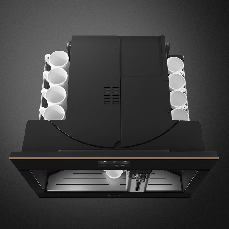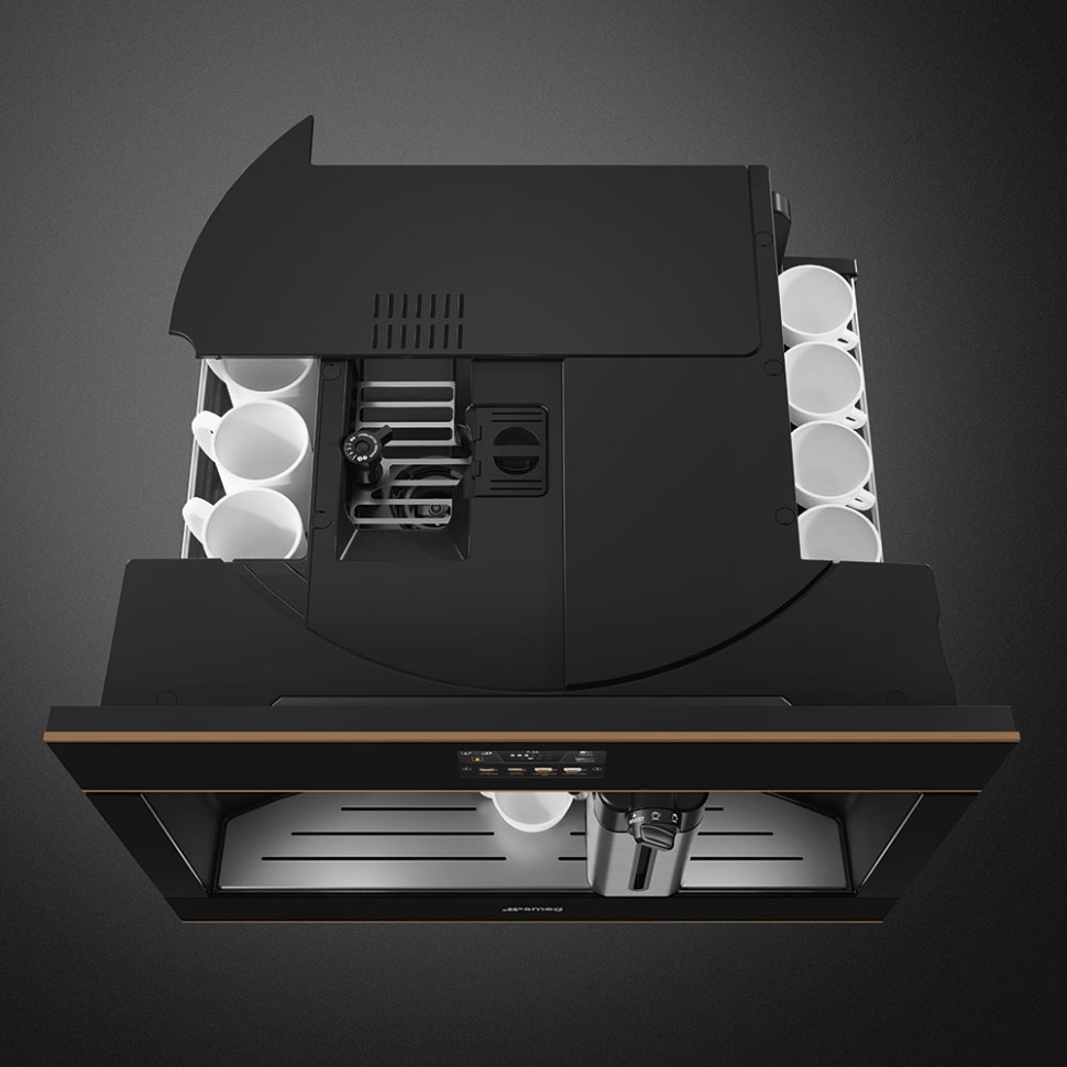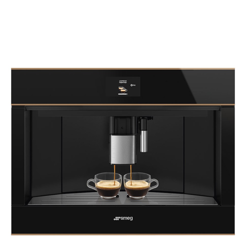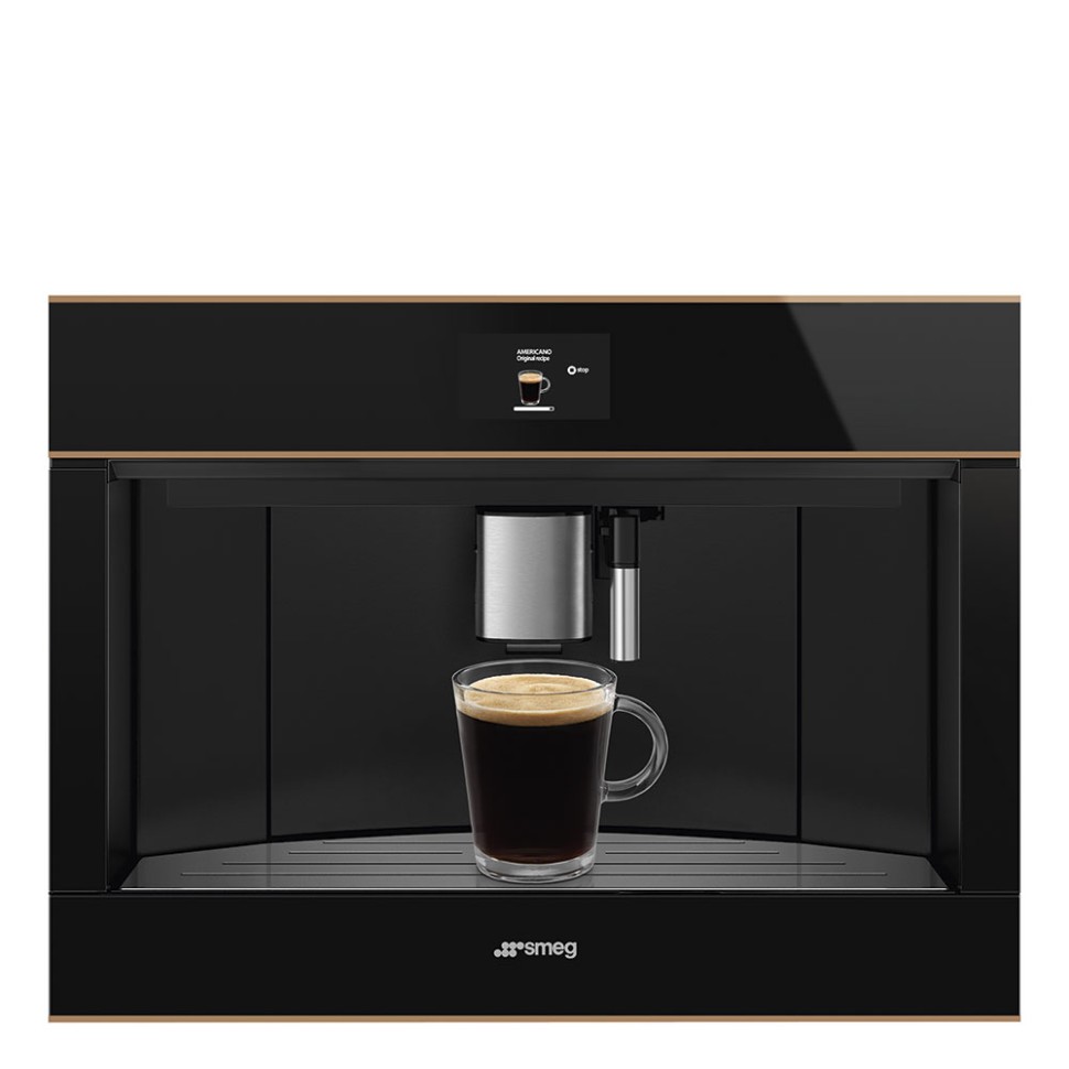 Автоматическая кофемашина, 60 см, высота 45 см, черное стекло Eclipse, медный профиль.