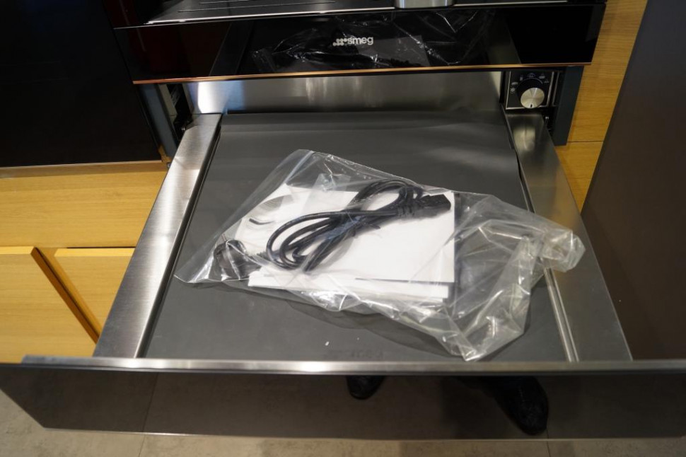 Подогреватель посуды, 60 см, высота 14 см, черное стекло, профиль нержавеющая сталь, открывание PUSH.