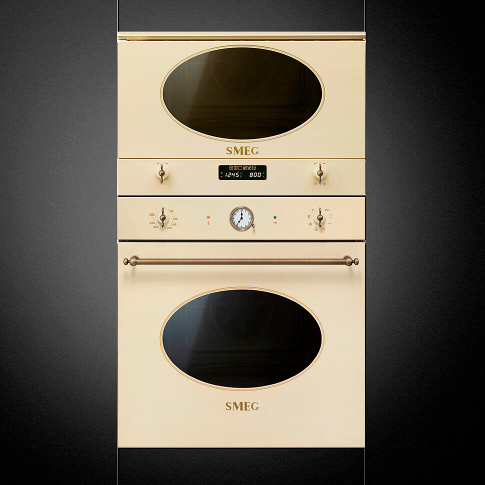 Встраиваемая микроволновая печь, 60 см, высота 38 см, 6 функций, объем 22 л, цвет кремовый, фурнитура латунная.