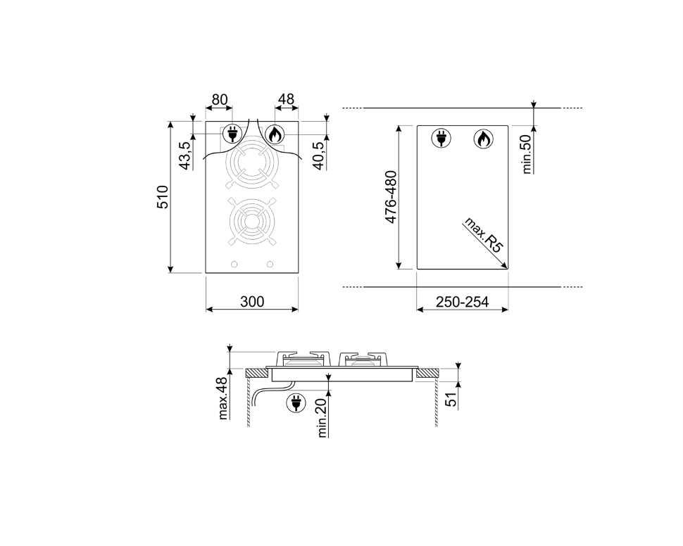 Газовая варочная панель, 30 cм, черная стеклокерамика