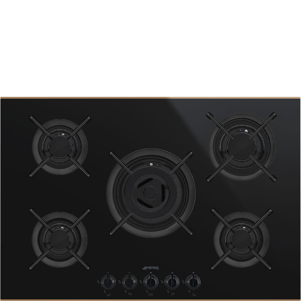 Газовая варочная панель, 75 cм, черная стеклокерамика, медный профиль