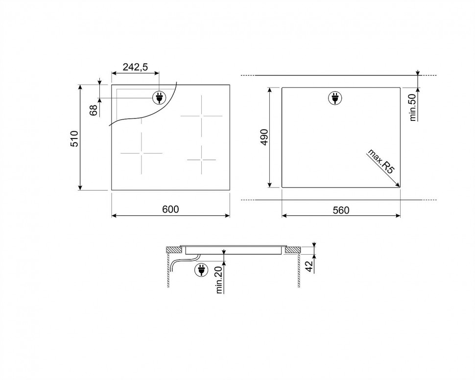 Cтеклокерамическая варочная панель, 60 см, прямой край