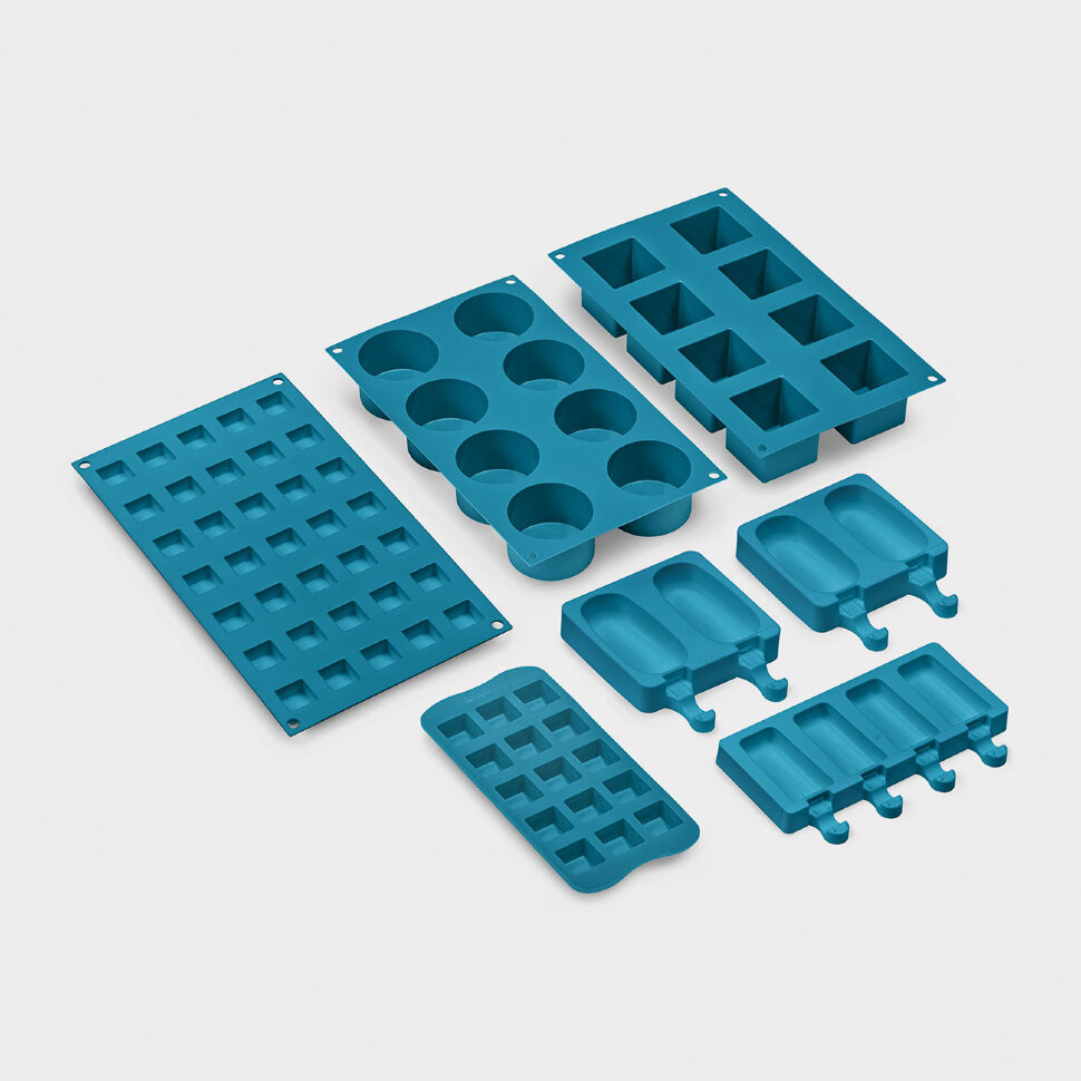 Set of 7 silicone moulds for ice creams, ice lollies, pralines, ice cubes or to portion food. Usable from -60°C to +230°C