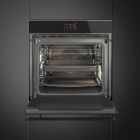 Многофункциональный духовой шкаф с пиролизом и пароувлажнением, 60 см, 19 функций, чёрное стекло Eclipse, медный профиль. Класс энергопотребления А+