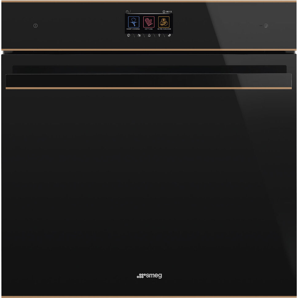 Многофункциональный духовой шкаф с пиролизом, 60 см, 10 функций, чёрное стекло Eclipse, медный профиль. Класс энергопотребления А+