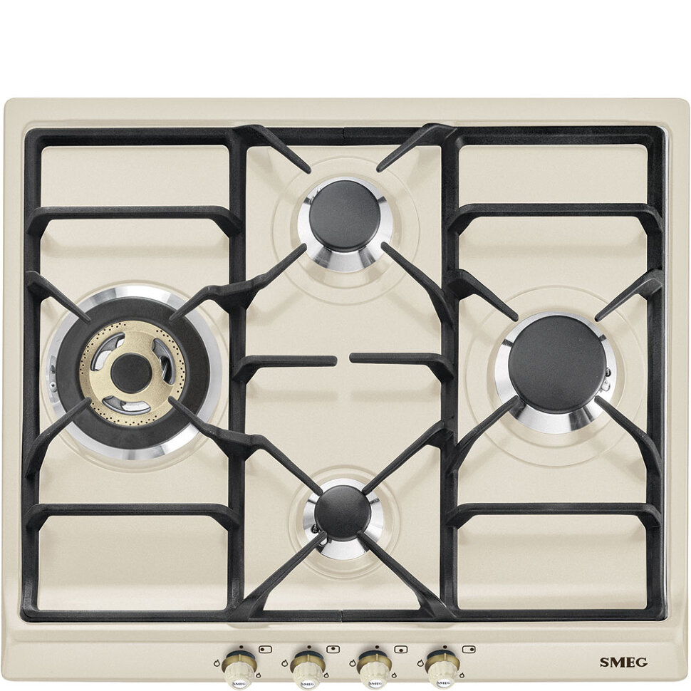 Газовая варочная панель, 60 см, кремовая, фурнитура латунная.