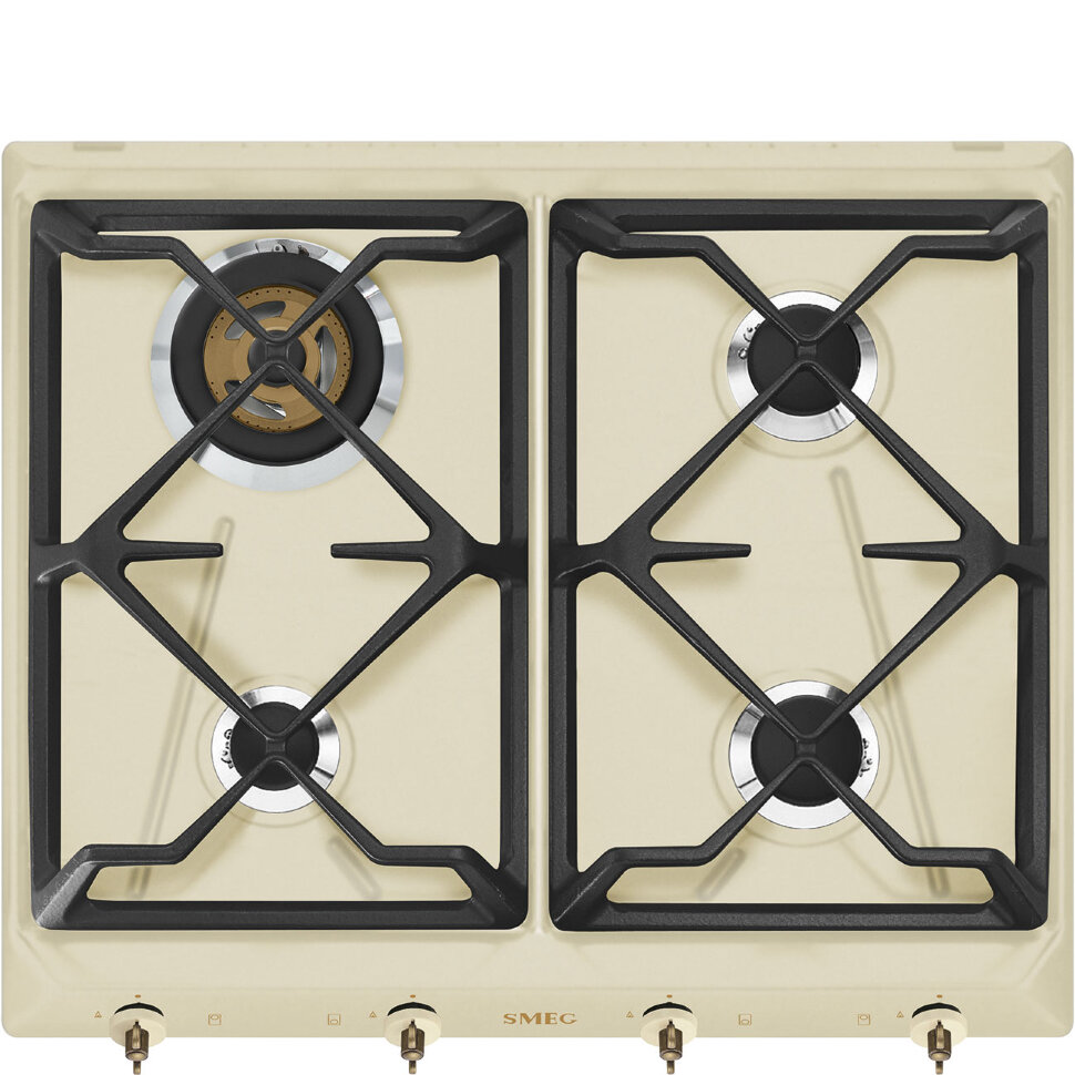 Газовая варочная панель, 60 см, кремовый, фурнитура латунная.
