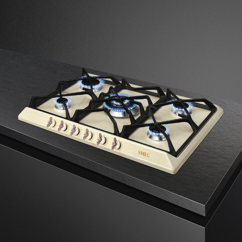 Газовая варочная панель, 68.5 см, кремовый, фурнитура латунная